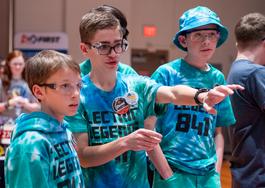 We hosted the Xerox Bluegrass FIRST Lego League Qualifying Tournament and recruited 40 volunteers to run the event. This tournament determined which Lego League teams moved on to their state championship. 'Lectric Legends team members volunteered as judges, referees, judging queuer, emcee, table re-setters, and sound board operators. Team members also built 60 Lego mission models and learned the Unearthed FLL game, as well as prepared for the tournament by creating signage, name tags, awards, etc. We proudly displayed our blue and green tie-dye brand from our shirts to the tablecloths.